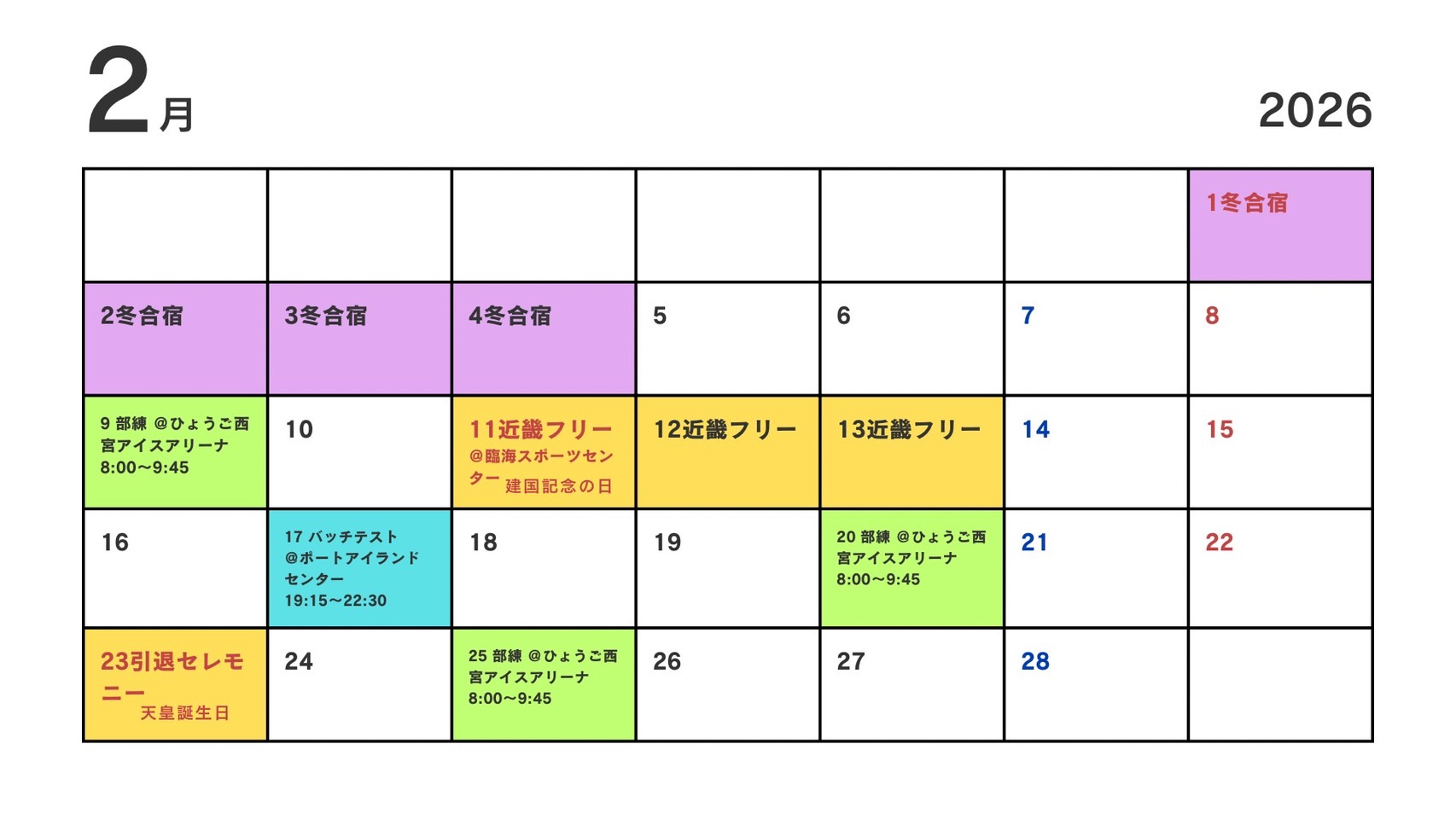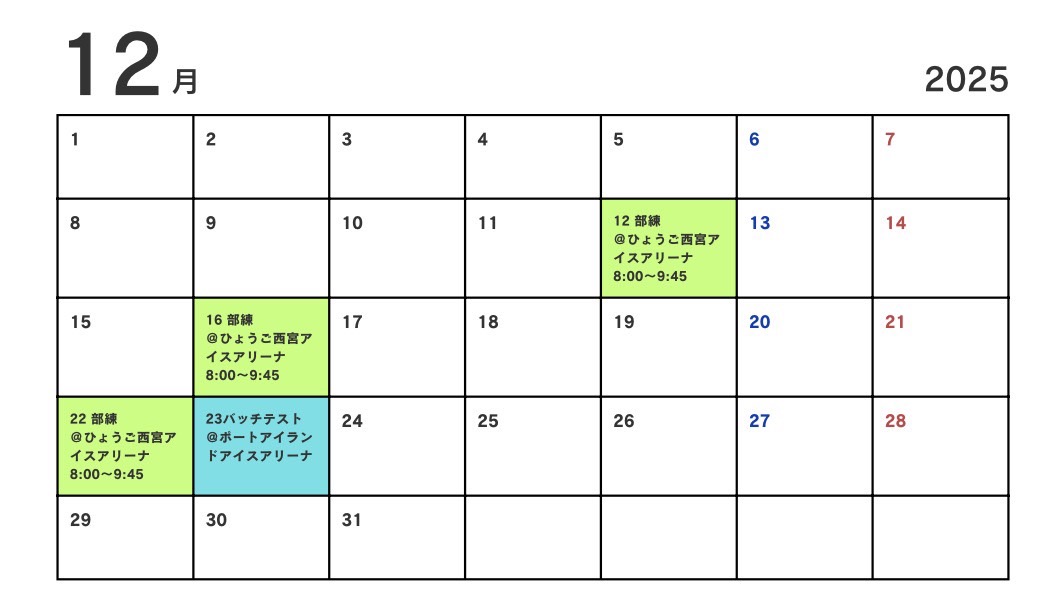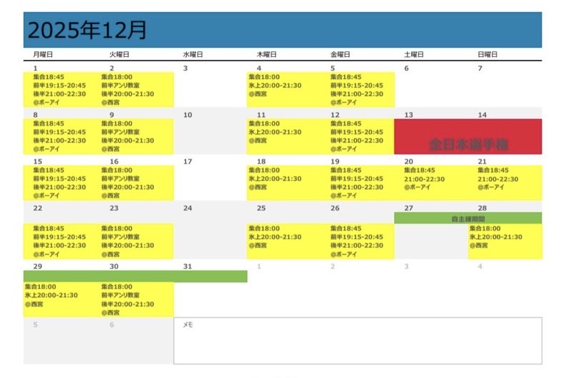 月間練習・試合予定